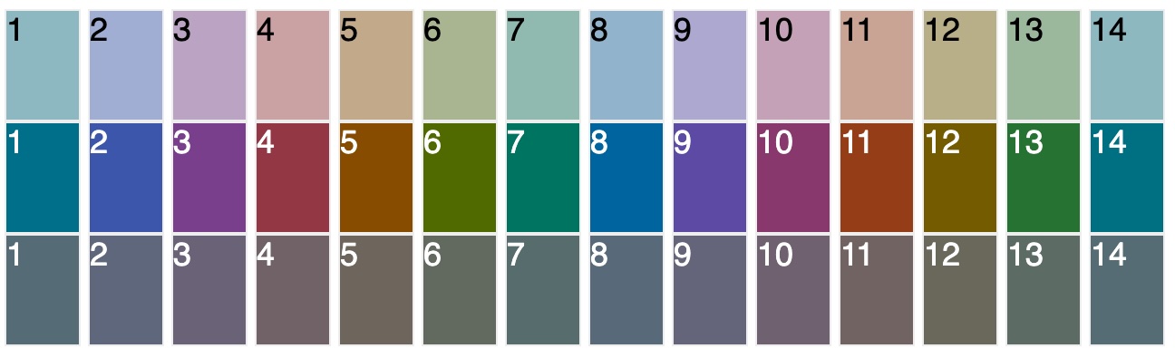 Ici, il s’agit d’un thème distribué : je ne connais pas le nombre de catégories, ni leur nom, ni leur identifiant. Idem pour les auteurices. Par ailleurs, nous souhaitions que le ou la proprio du blog puisse choisir une ambiance dominante de couleurs vives ou de couleurs douces, en harmonie entre elles et reconnaissables si l’on passe d’une gamme à l’autre. Je ne pouvais donc pas préciser telle couleur pour telle catégorie (ou auteurice).