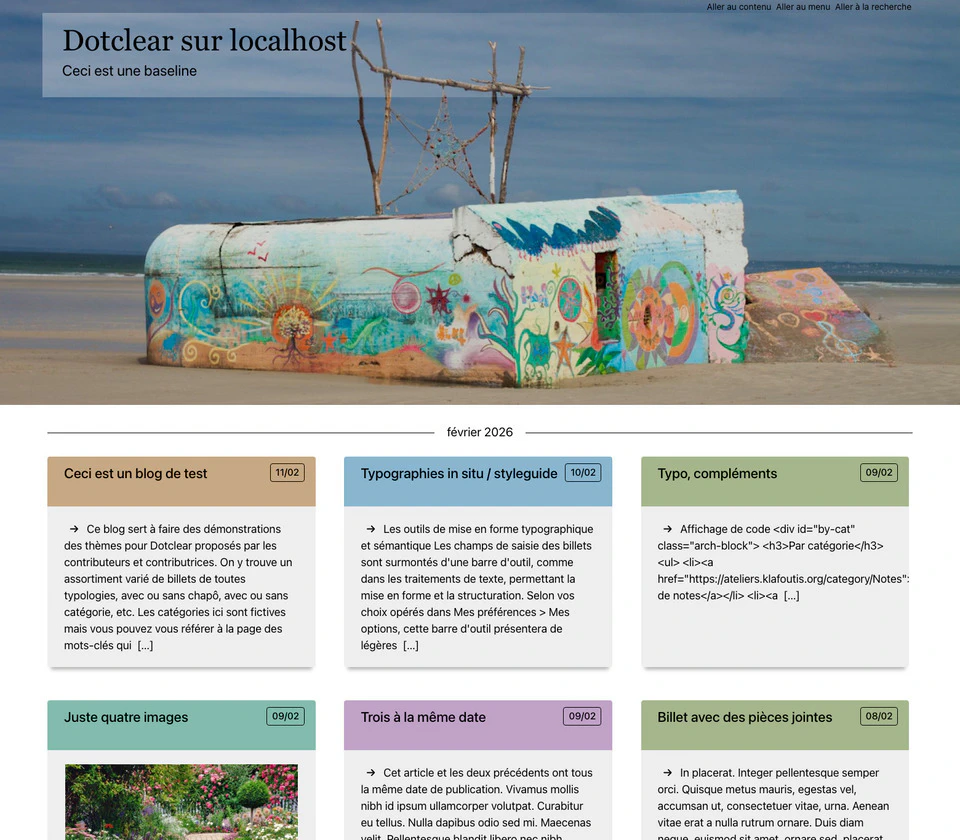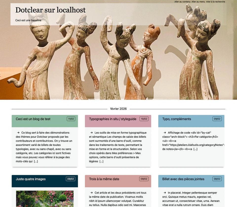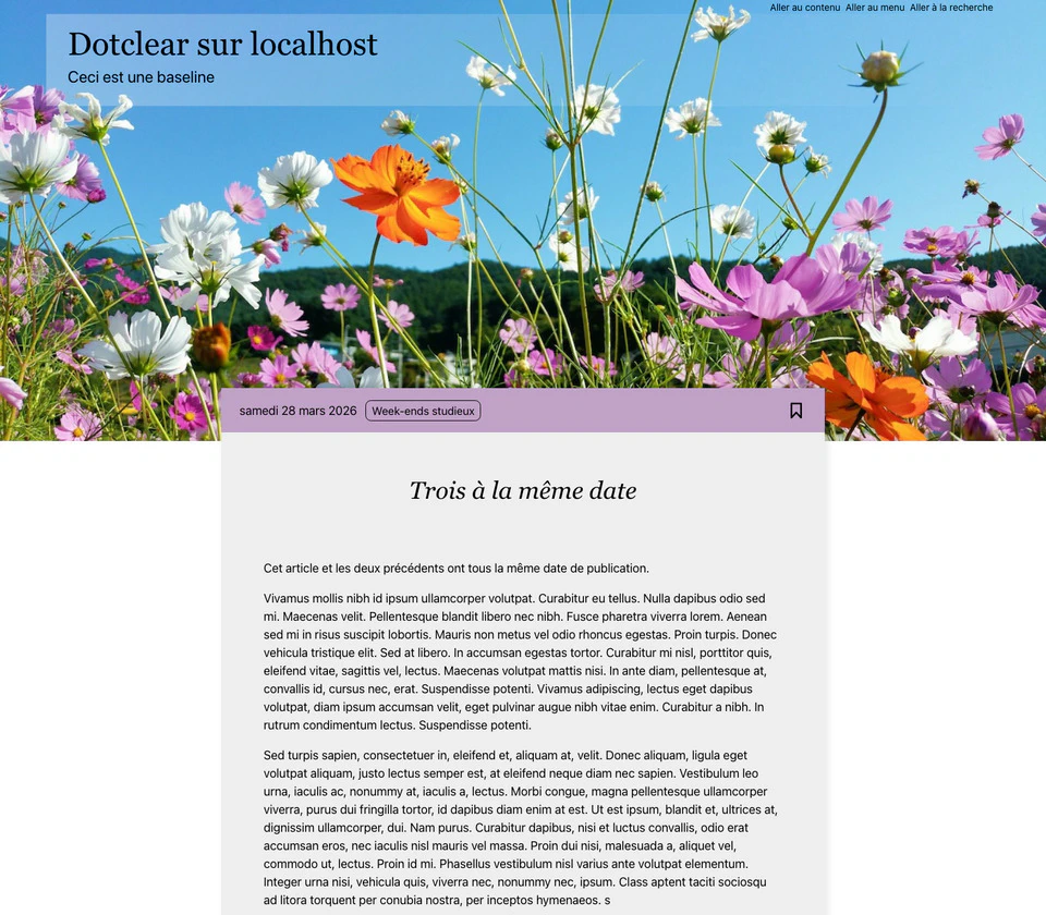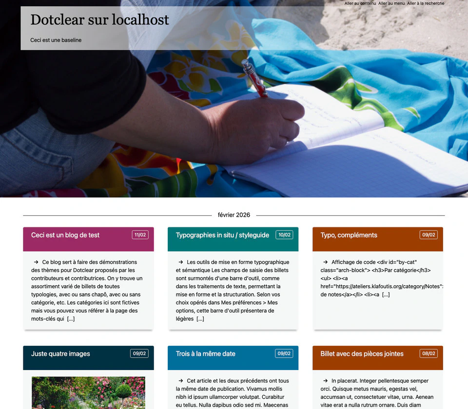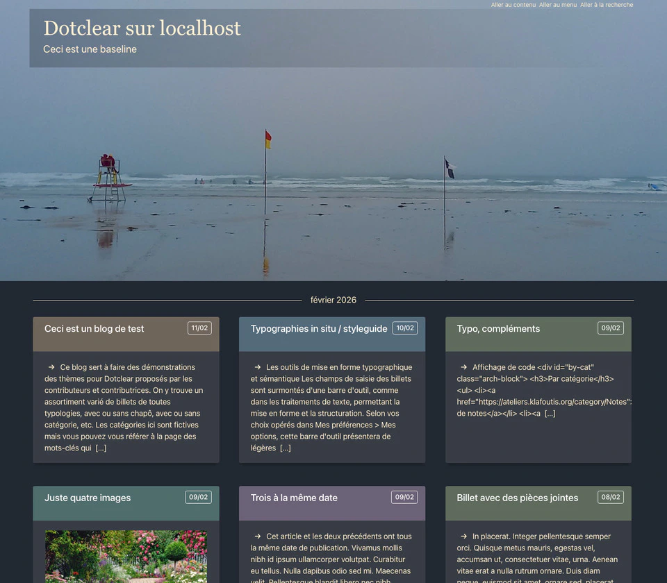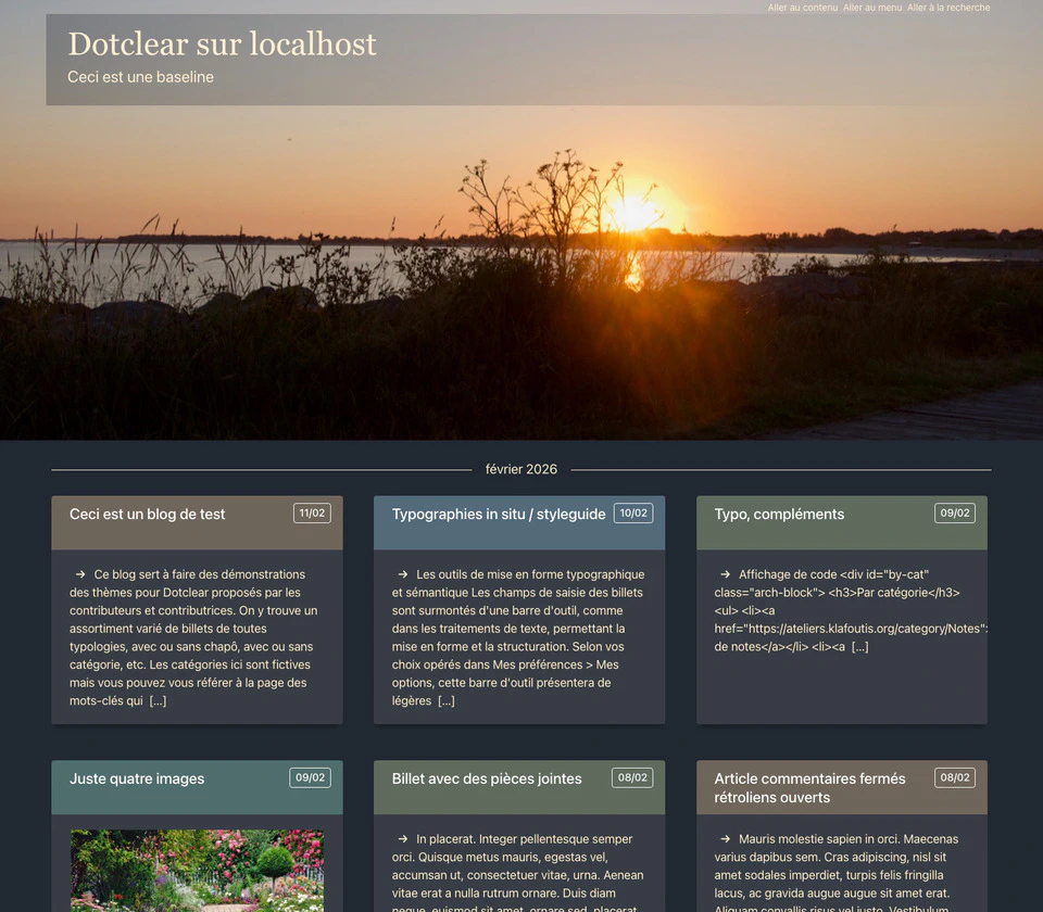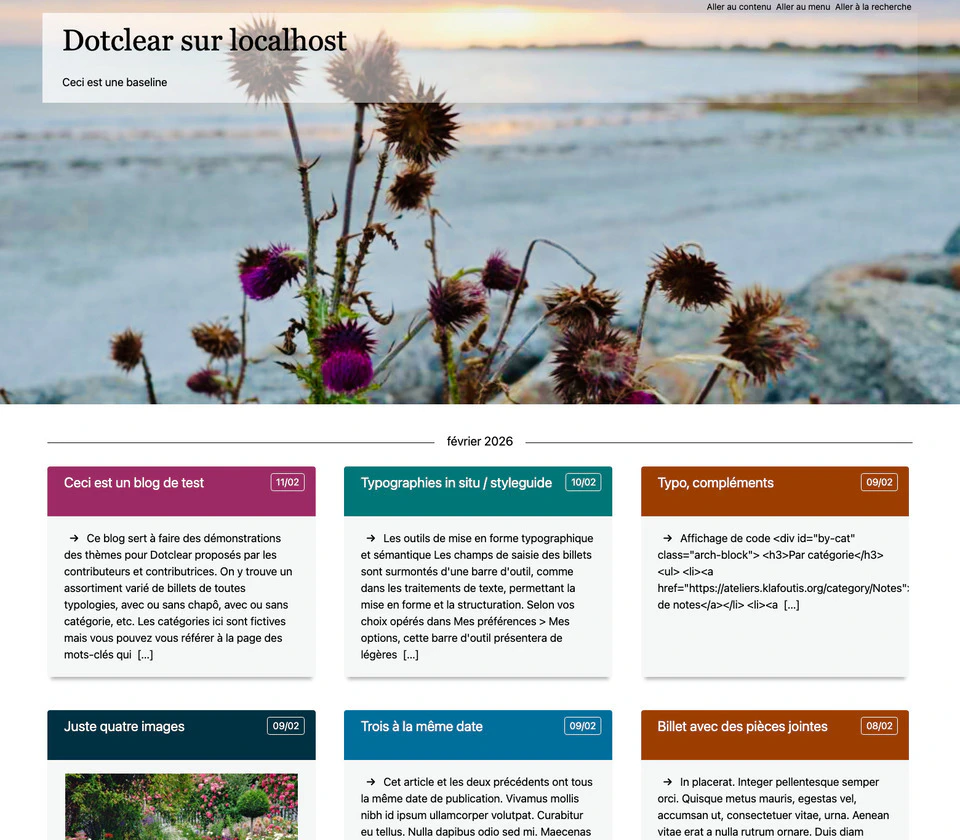 • L’image de bannière est remplaçable, le thème est livré avec un assortiment mais on peut choisir une autre image dans sa médiathèque.